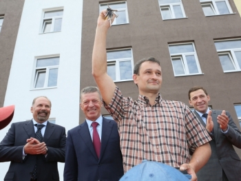 Дмитрий Козак, Михаил Мень и Евгений Куйвашев вручили ключи от квартиры миллионному переселенцу из ветхого жилья
