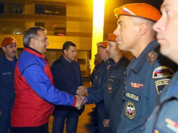 "Я бы хотел, Владимир Андреевич, поблагодарить личный состав ГУ МЧС за реакцию и профессионализм, проявленные при недавнем ЧС в нашем киноконцертном театре "Космос", когда на пожар в течение считанных минут подъехали расчеты, не допустили распространения огня, обрушения конструкций и, самое главное, жертв. Просил бы вас поощрить сотрудников", — обратился к главе министерства Евгений Куйвашев.