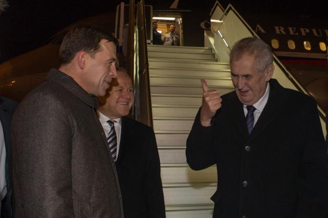 Евгений Куйвашев встретил в Кольцово Президента Чехии Милоша Земана, прибывшего с рабочим визитом в Свердловскую область