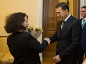 На встрече с губернатором Евгением Куйвашевым Чрезвычайный и Полномочный Посол Франции в России Сильвѝ Берма̀нн высоко оценила футбольную площадку "Екатеринбург-Арена", а также сообщила, что намерена приехать в Екатеринбург на игру французской сборной в матче группового этапа Чемпиона Мира по футболу.