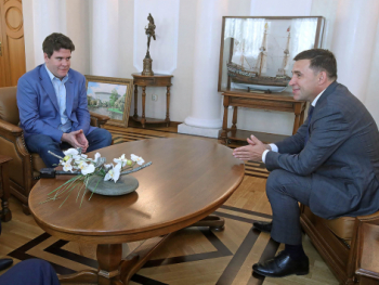 Губернатор Евгений Куйвашев 25 июня встретился с одним из самых знаменитых пианистов мира, Народным артистом России Денисом Мацуевым, который прибыл в Екатеринбург для проведения третьего фестиваля-конкурса юных талантов "Денис Мацуев представляет".