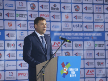Губернатор Свердловской области Евгений Куйвашев от лица Президента России Владимира Путина и от себя лично поприветствовал участников и гостей первого в истории командного Чемпионата Европы по дзюдо, проходящего 18 июля в Екатеринбурге.