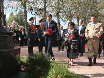 Участники церемонии, а также школьники, юнармейцы возложили к памятнику цветы, прозвучали ружейные залпы и песня об "Альфе" в исполнении российской певицы Вики Цыгановой, написанная специально к сегодняшнему дню.