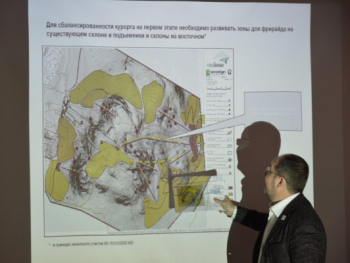 На первом этапе развития курорта предложено сконцентрироваться на улучшении инфраструктуры существующего склона и задействовать восточный. Участники заседания познакомились с планом горнолыжной деревни, которая должна появиться на одном из склонов комплекса непосредственно перед зоной выката.