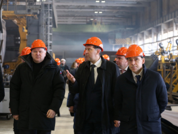 Еще одним пунктом программы рабочего визита стало посещение Уралвагонзавода. Николай Цуканов и Евгений Куйвашев в сопровождении генерального директора корпорации Александра Потапова осмотрели цех общей сборки № 135, где изготавливаются полувагоны и вагоны малых серий. На этой площадке в разные годы велись работы по сборке и испытаниям бронемашин и дорожно-строительной техники. Сегодня цех трансформирован под производство специализированных вагонов, таких как окатышевоз, зерновоз, лесовоз и других. Здесь создан новый участок изготовления полувагонов и вагонов малых серий, рассчитанный на 1200 вагонов-хопперов в год. Именно в этом цехе весной прошлого года проводился VI Всероссийский форум рабочей молодежи. Цех посетил Президент Российской Федерации Владимир Путин.