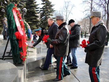 Возложить цветы сегодня пришли командующий войсками ЦВО Александр Лапин, полномочный представитель Президента России в УрФО Николай Цуканов, по поручению Евгения Куйвашева — вице-губернатор Сергей Бидонько. А также участие в церемонии приняли члены областного правительства, депутаты Заксобрания, представители администрации Екатеринбурга, военнослужащие и ветераны.