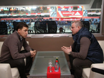 Рабочая встреча губернатора и главы Рослесхоза состоялась в перерыве хоккейного матча между командами "Автомобилист" и "Салават Юлаев", который вместе посетили Евгений Куйвашев и Иван Валентик.