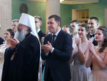 Губернатор Свердловской области Евгений Куйвашев и митрополит Екатеринбургский и Верхотурский Кирилл поздравили уральских школьников – отличников учебы на 18 мая на Императорском балу, ежегодно проходящем под покровительством Екатеринбургской митрополии.