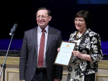 За большой вклад в просвещение жителей региона Свердловская областная универсальная научная библиотека им. В.Г. Белинского удостоена Почетного диплома губернатора Свердловской области, который директору Ольге Опариной вручил Павел Креков.