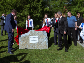 Ярким акцентом новой аллеи стал камень с надписью: "Екатеринбург — город 160 народов".