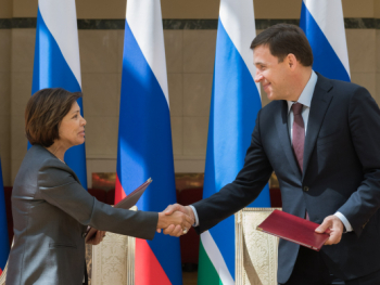Губернатор Евгений Куйвашев и президент Всероссийской федерации школьного спорта, депутат Государственной думы Ирина Роднина 14 июня подписали соглашение, направленное на укрепление здоровья юных уральцев.