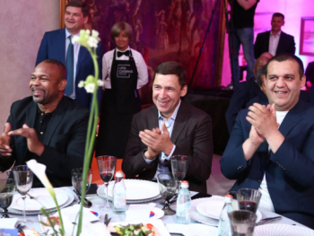 Губернатор Свердловской области 15 июня принял участие в торжественном приеме в формате благотворительного аукциона в рамках Международного боксерского форума в Екатеринбурге.