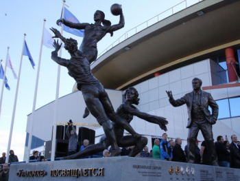В Екатеринбурге у Дворца игровых видов спорта открыта скульптурная композиция, посвященная легендарному волейбольному клубу "Уралочка" и его бессменному тренеру Николаю Карполю.