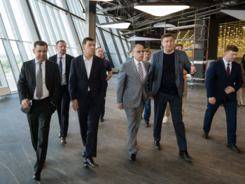 Евгению Куйвашеву показали помещения, предназначенные для проведения бизнес-мероприятий. Для этого предусмотрено 13 конференц-залов и 26 переговорных с оборудованием для синхронного перевода на восемь языков.