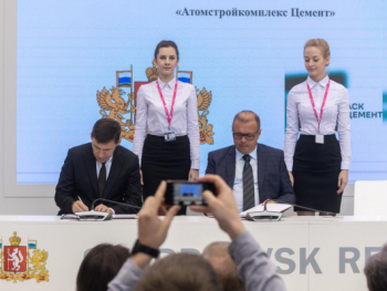 На полях Международной выставки ИННОПРОМ подписано соглашение между правительством Свердловской области и "Атомстройкомплекс Цемент", которое позволит мониторить ход строительства и эксплуатацию завода по производству цементного клинкера. Подписи под документом поставили губернатор Свердловской области Евгений Куйвашев и директор компании Эдуард Глызин.