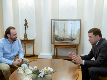 Губернатор Евгений Куйвашев и российский фигурист, залуженный мастер спорта, хореограф и продюсер собственного ледового шоу Илья Авербух 29 августа во время рабочей встречи обсудили возможности Свердловской области по развитию спорта.
