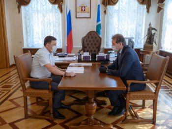 Губернатор Евгений Куйвашев и генеральный директор концерна "Уралвагонзавод" Александр Потапов в ходе рабочей встречи 10 июля обсудили текущую работу и перспективы развития предприятий, работающих на территории Свердловской области.