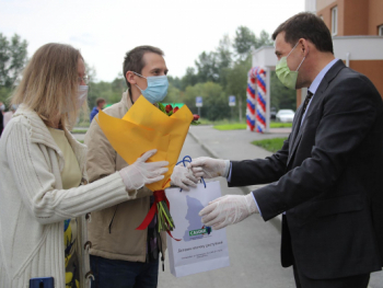 Евгений Куйвашев вручил ключи новоселам жилого комплекса "Кольцовский дворик", достроенного благодаря поддержке региона