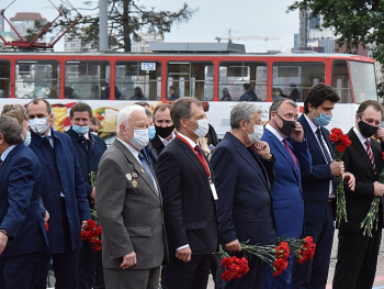 В день 297-летия Екатеринбурга Алексей Орлов принял участие в церемонии возложения цветов к памятнику основателям города