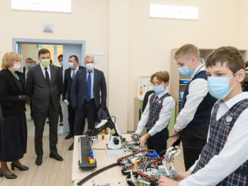 Евгений Куйвашев и Андрей Козицын оценили возможности, созданные в школе №25 Верхней Пышмы, после реконструкции