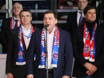 Евгений Куйвашев приветствовал участников и гостей матча "Кубка Вызова" в Екатеринбурге