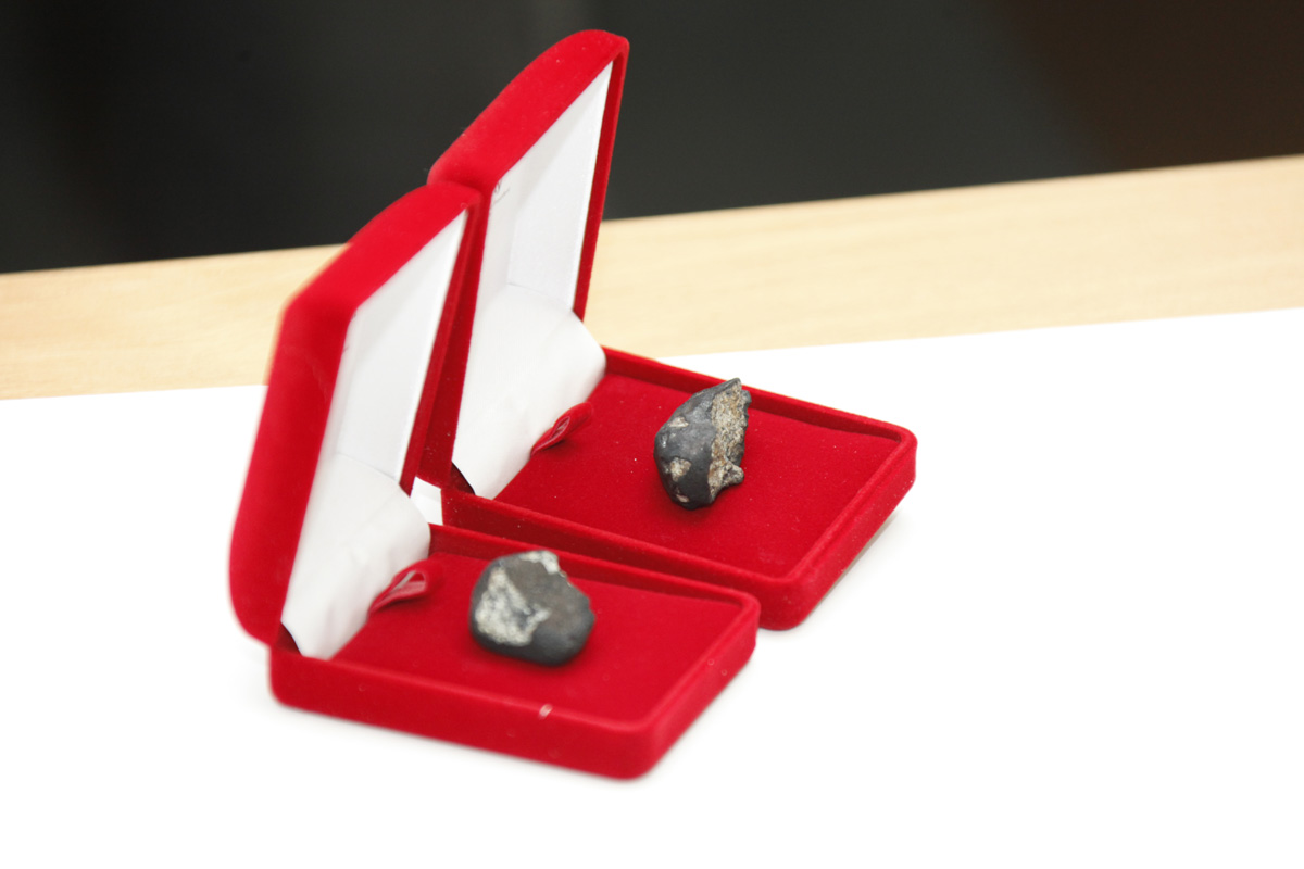 Секретарю Совбеза и главе региона продемонстрировали самый крупный из найденных обломков — его вес около 2 килограммов. Осколок буквально только что привезли в университет и еще даже не успели внести в каталог.