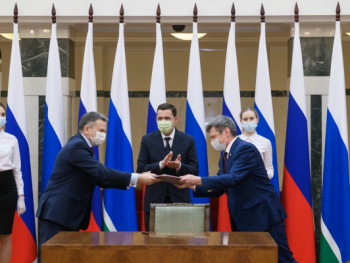 Губернатор Свердловской области Евгений Куйвашев, первый вице-президент Свердловского областного союза промышленников и предпринимателей Михаил Черепанов и председатель областной Федерации профсоюзов Андрей Ветлужских 4 марта подписали трехстороннее соглашение по регулированию социально-трудовых отношений в регионе на 2021-2023 годы.