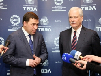 В ходе рабочего визита на предприятия Росатома, расположенные на Среднем Урале, председатель наблюдательного совета госкорпорации "Росатом" Борис Грызлов совместно с губернатором Евгением Куйвашевым посетил ОАО "Уральский электрохимический комбинат" в Новоуральске. "Это самый мощный комбинат в стране по обогащению урана, — отметил Борис Грызлов. – Атомная промышленность – локомотив экономики России. И мы должны развивать массу высокотехнологичных производств, представленных здесь, в Новоуральске, для чего предстоит совместно с регионом решить ряд вопросов".