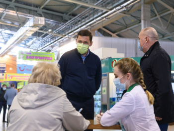 Евгений Куйвашев проверил работу пункта вакцинации от коронавируса в одном из торговых центров Екатеринбурга