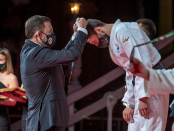 Евгений Куйвашев вручил золотую медаль победителю ЧМ по дзюдо Яго Абуладзе