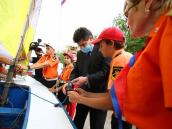 Прежде, чем начать торжественное построение, воспитанники отряда провели для первого заместителя губернатора мастер-класс по вязанию морских узлов и постановке парусов, а также по вооружению яхты для выхода на воду.