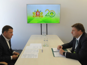 Евгений Куйвашев и генеральный директор Росагролизинга Павел Косов договорились о расширении сотрудничества и ещё более активном привлечении инструментов поддержки уральских аграриев. Речь об этом шла 12 августа на рабочей встрече в рамках Всероссийского дня поля, который принимает в этом году наш регион.
