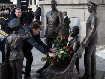 "Свердловская область – это родина сильных, смелых и мужественных людей, настоящих героев, которые делами доказывают свою верность России. В столетнюю годовщину Дня защитника Отечества у стен суворовского училища мы открываем скульптурную композицию – символ единства идеалов и традиций военнослужащих всех поколений. Здесь воплощены благодарность ветеранам и нынешним воинам, вера в нашу молодежь – в тех, кто в скором будущем примет эстафету воинской доблести и чести", — сказал во время церемонии Евгений Куйвашев.