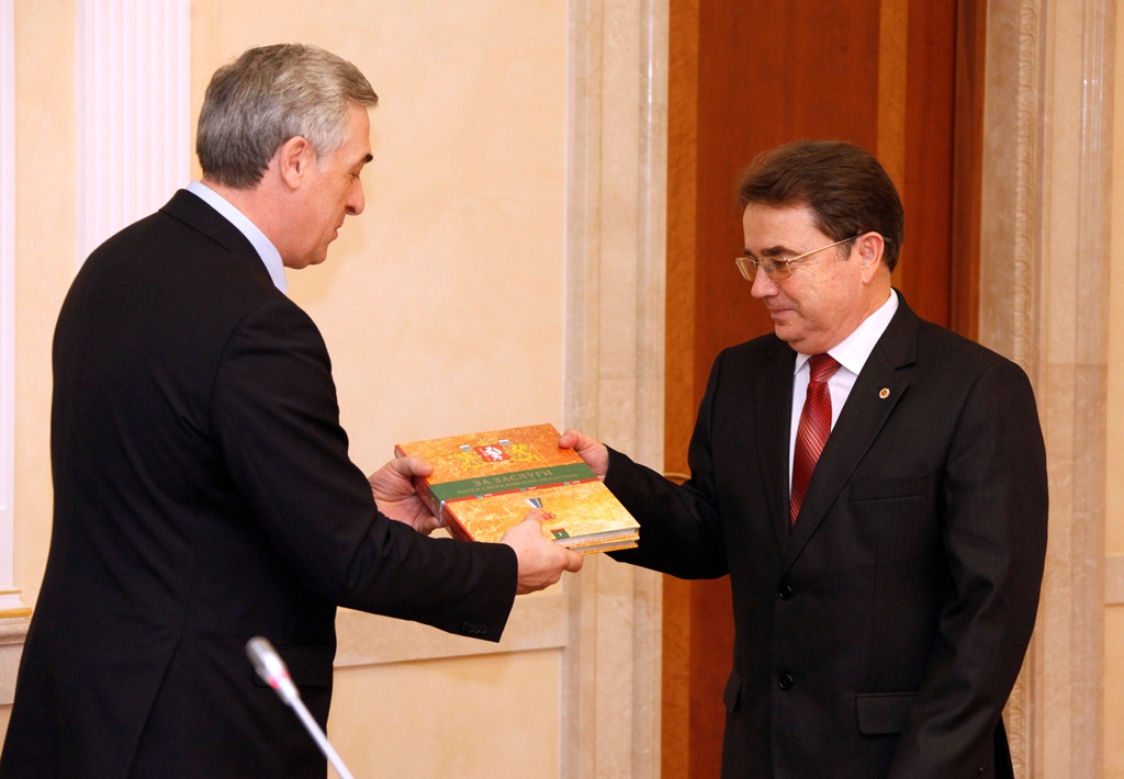 Издание в трех томах, которое познакомит свердловчан с земляками, отмеченными одной из самых почетных областных наград – знаком "За заслуги перед Свердловской областью" выйдет в свет к 80-летию Среднего Урала, которое будет отмечаться в январе 2014 года. Первые экземпляры из пилотной партии вице-губернатор – руководитель администрации главы региона, глава редакционной коллегии издания Яков Силин вручил бывшему председателю облизбиркома, ныне судье Уставного суда региона Владимиру Мостовщикову и экс-начальнику УФСБ Борису Козиненко, чьи имена также вошли в издание.