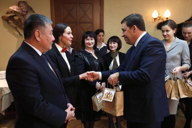 Отметим, в этом году в качестве новогодних подарков Евгений Куйвашев вручил иностранным представителям сувениры, сделанные людьми с ограниченными возможностями: шкатулки и новогодние игрушки изготовили мастера художественно-ремесленного объединения "Благое дело" из поселка Верх-Нейвинский. По словам Мишеля Барана, Генерального консула Франции в Екатеринбурге, такие начинания очень важны. "Подобные акции дают надежду людям с ограниченными возможностями быть по-настоящему признанными членами общества", — сказал он. Султан Гасымов выразил готовность познакомиться с автором сувенира и пригласить его в Генеральное консульство. "Это очень трогательная инициатива, я хотел бы подружиться с мастером", – отметил дипломат.