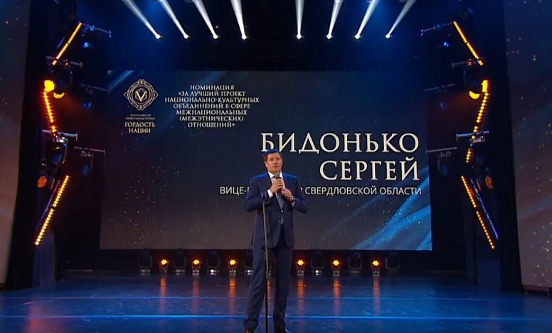 Сергей Бидонько на церемонии награждения вручил премии победителям в номинации "За лучший проект национально-культурных объединений в сфере межнациональных (межэтнических) отношений". Лауреатами третьей степени стали Елена Тюрми и Ольга Осмоловская из Ленинградской области. Звание лауреат второй степени получили Эльвира Куклина, Анастасия Галиева, Снежана Мамаева из Марий Эл. Звания лауреата первой степени премии "Гордость нации" удостоен Александр Черных из Перми.